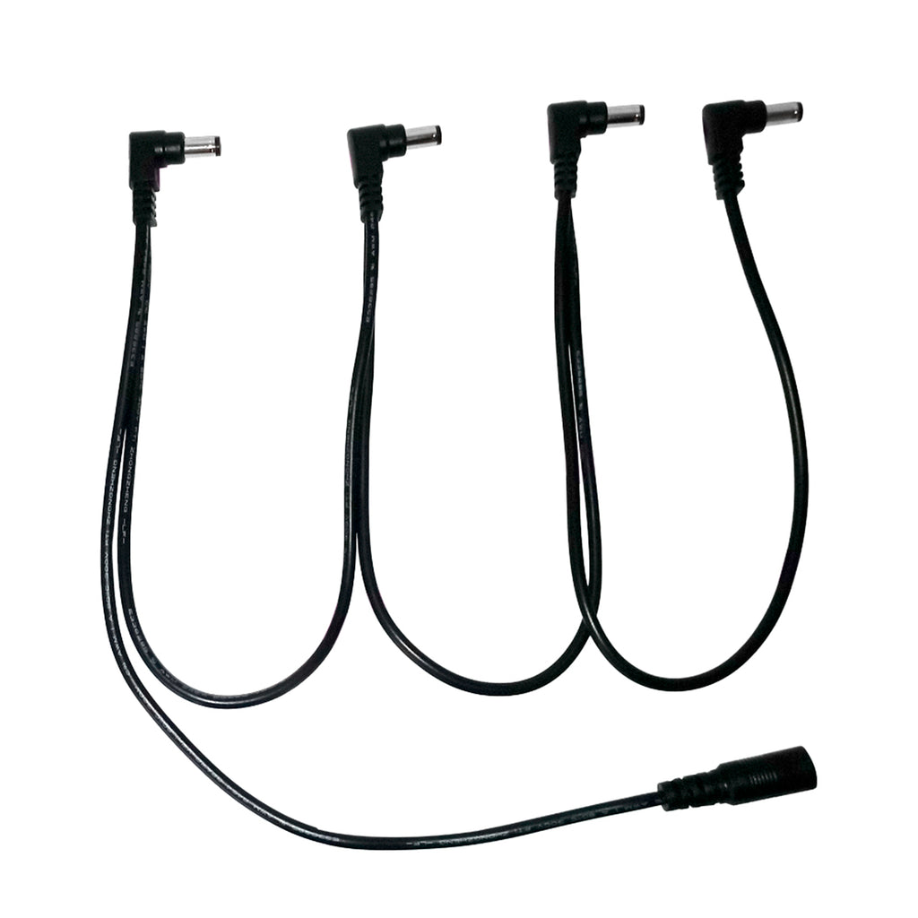 - Conectores de salida: Este cable tiene 4 conectores de salida con conectores de 5.5mm x 2.1mm, que se ajustan a la mayoría de los pedales de efectos de 9V.