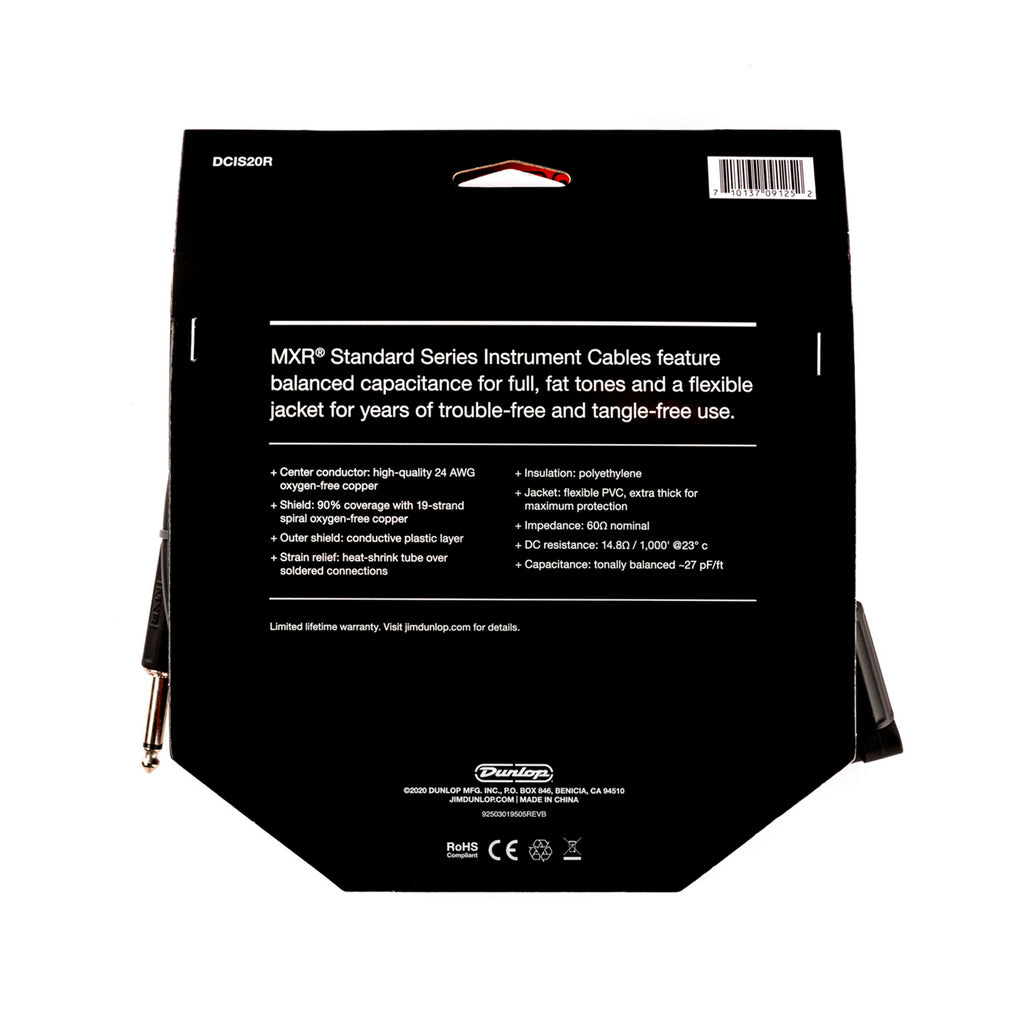 El cable MXR DCIS20R es un cable de instrumento diseñado para ofrecer una transmisión de señal clara y sin interferencias, ideal para guitarras y bajos.