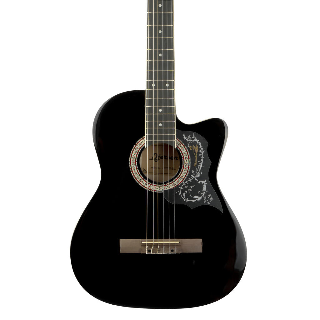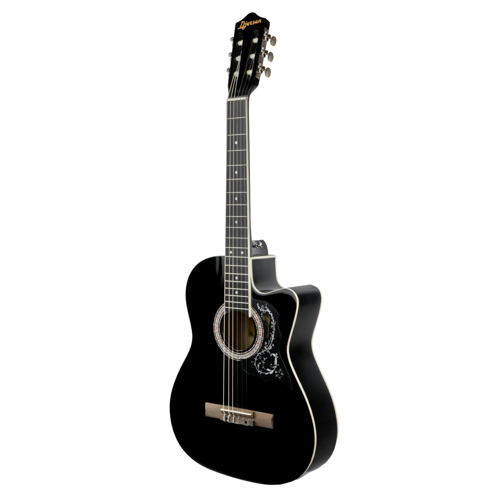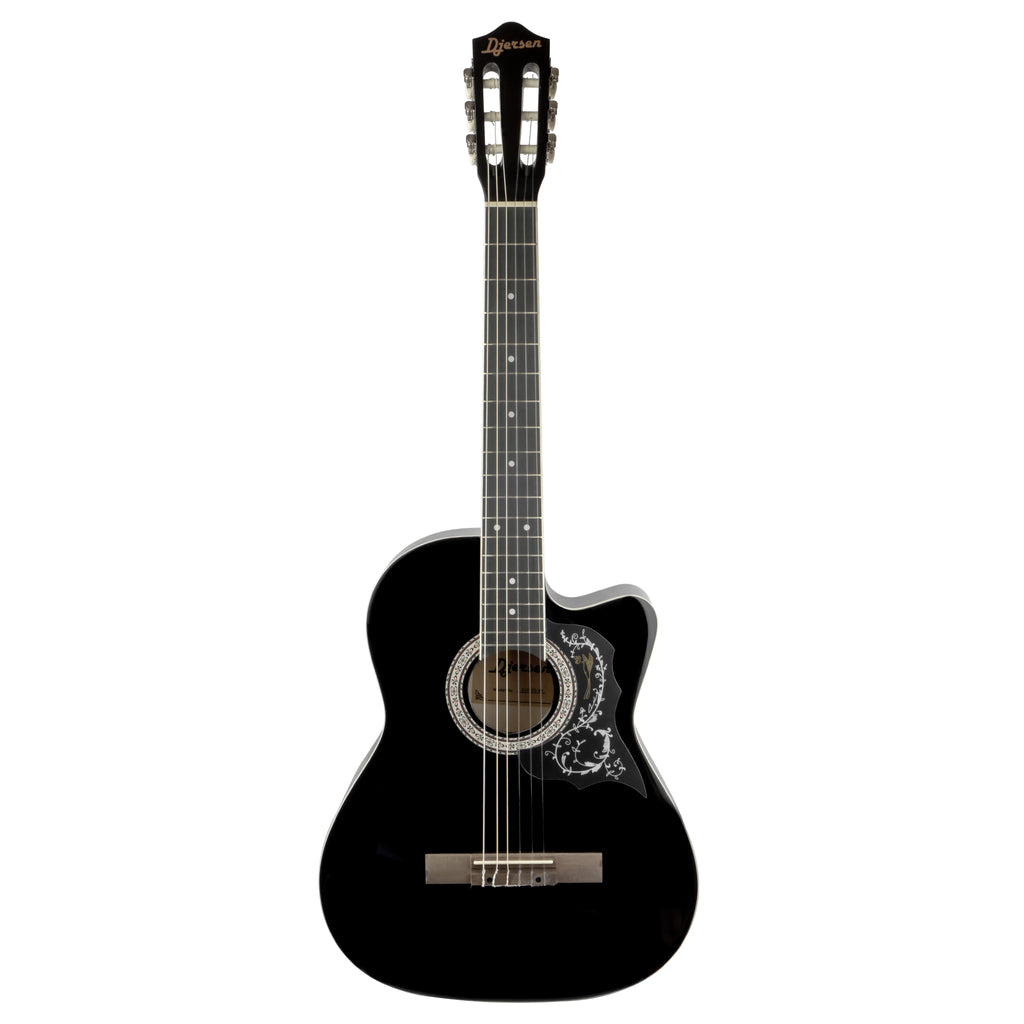 La Guitarra Clásica con Corte 39″ Djersen DJ39CG-BK es una guitarra de cuerdas de nylon diseñada para principiantes y amantes de la música que desean un instrumento cómodo, funcional y con buen sonido para comenzar a tocar de inmediato. Con cuerpo de 39″ y diseño con cutaway, permite un acceso más fácil a los trastes altos, facilitando la ejecución de repertorio variado.
