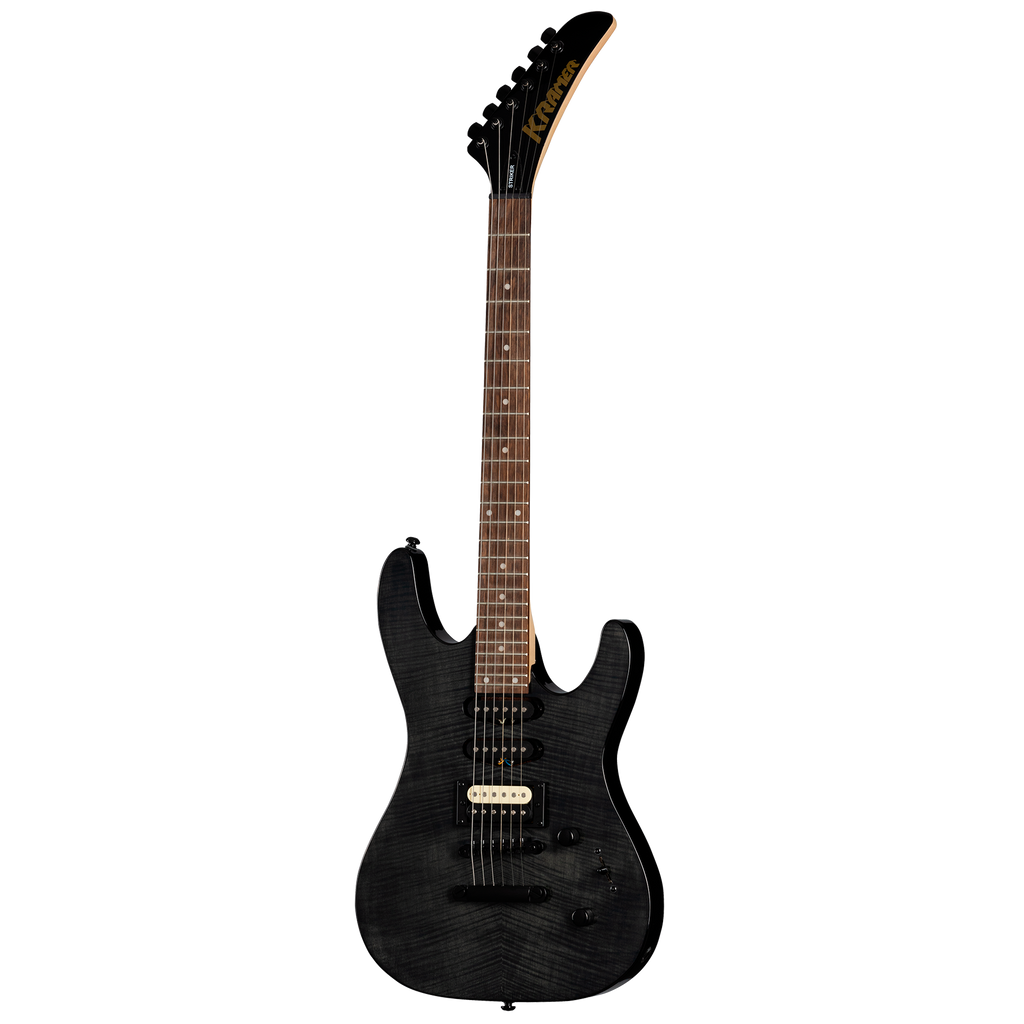La guitarra eléctrica Kramer Striker Figured HSS Transparent Ebony es una fusión impresionante de estética y rendimiento. Su acabado transparente resalta la belleza natural de la madera. La configuración HSS (Humbucker-Single-Single) permite una versatilidad tonal excepcional, ideal para pasar de riffs contundentes a suaves melodías con facilidad.