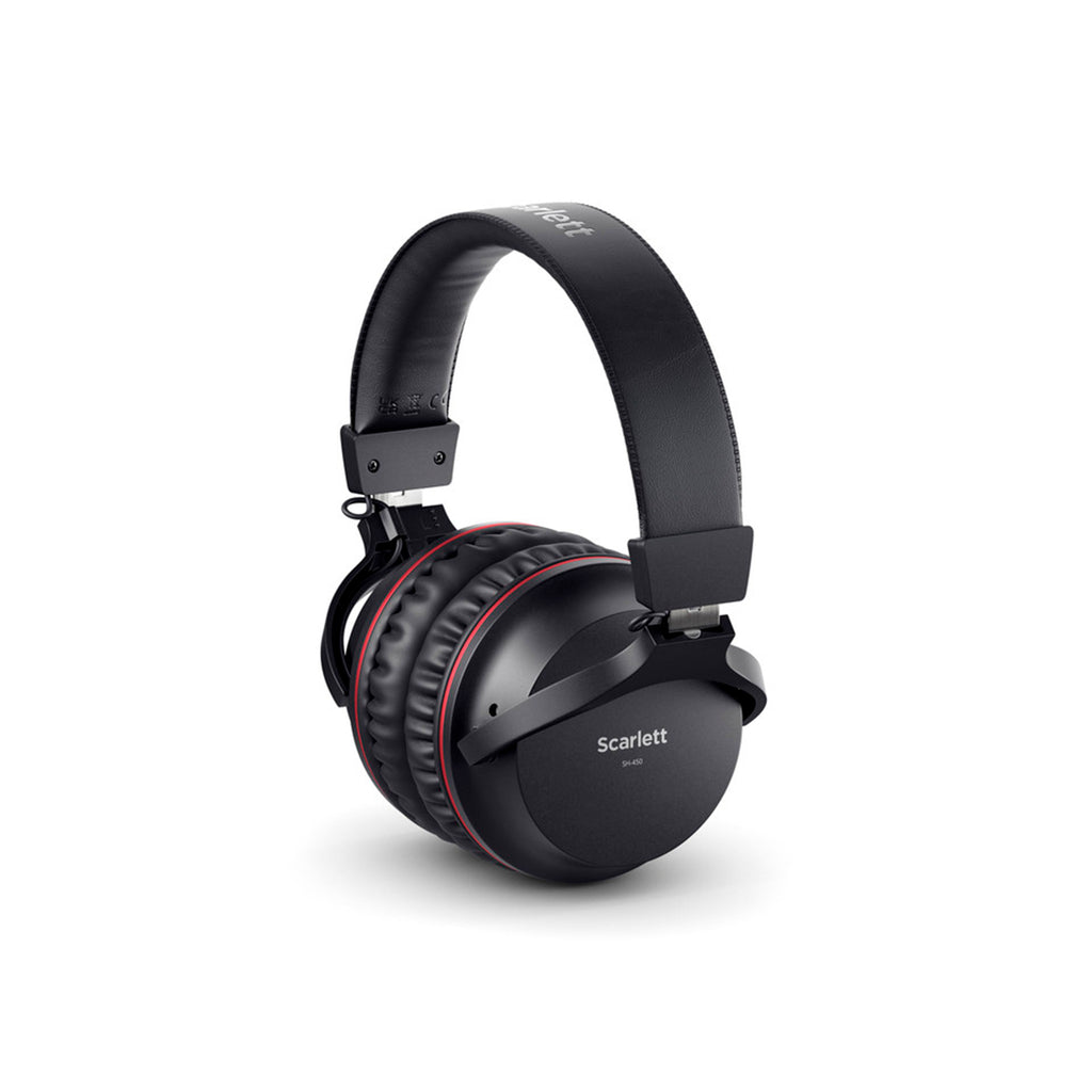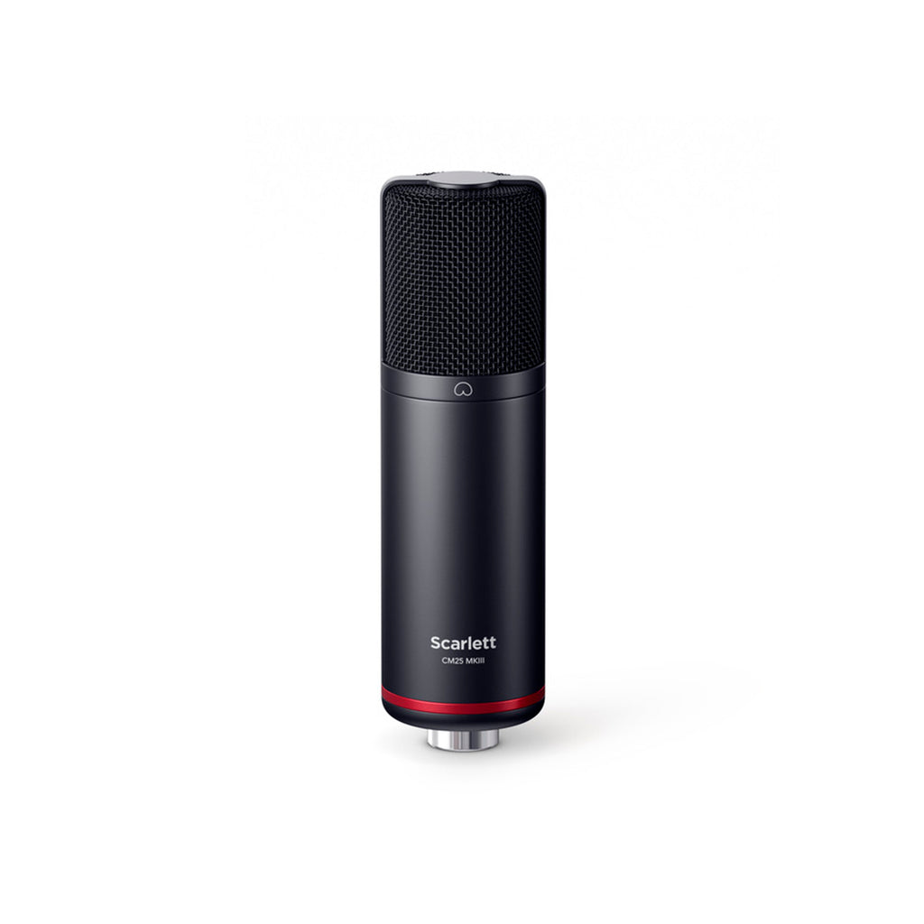 Incluye interfaz Scarlett Solo (mic pre, entrada para instrumento), micrófono de condensador CM25 MkIII, y auriculares SH-450 (o HP60 MkIII en versiones antiguas).