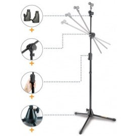 Un soporte estable, rígido y muy durable que te brinda el mejor desempeño en todas las situaciones. Incluye su porta micrófono tipo pinza que te permite colocar varios tipos de micrófonos inalámbricos.