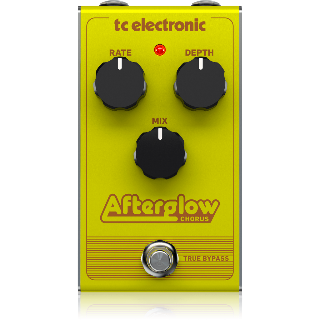 El Afterglow Chorus funciona con una fuente de alimentación de 9V (no incluida), y también es compatible con la mayoría de las fuentes de alimentación estándar para pedales de efectos.