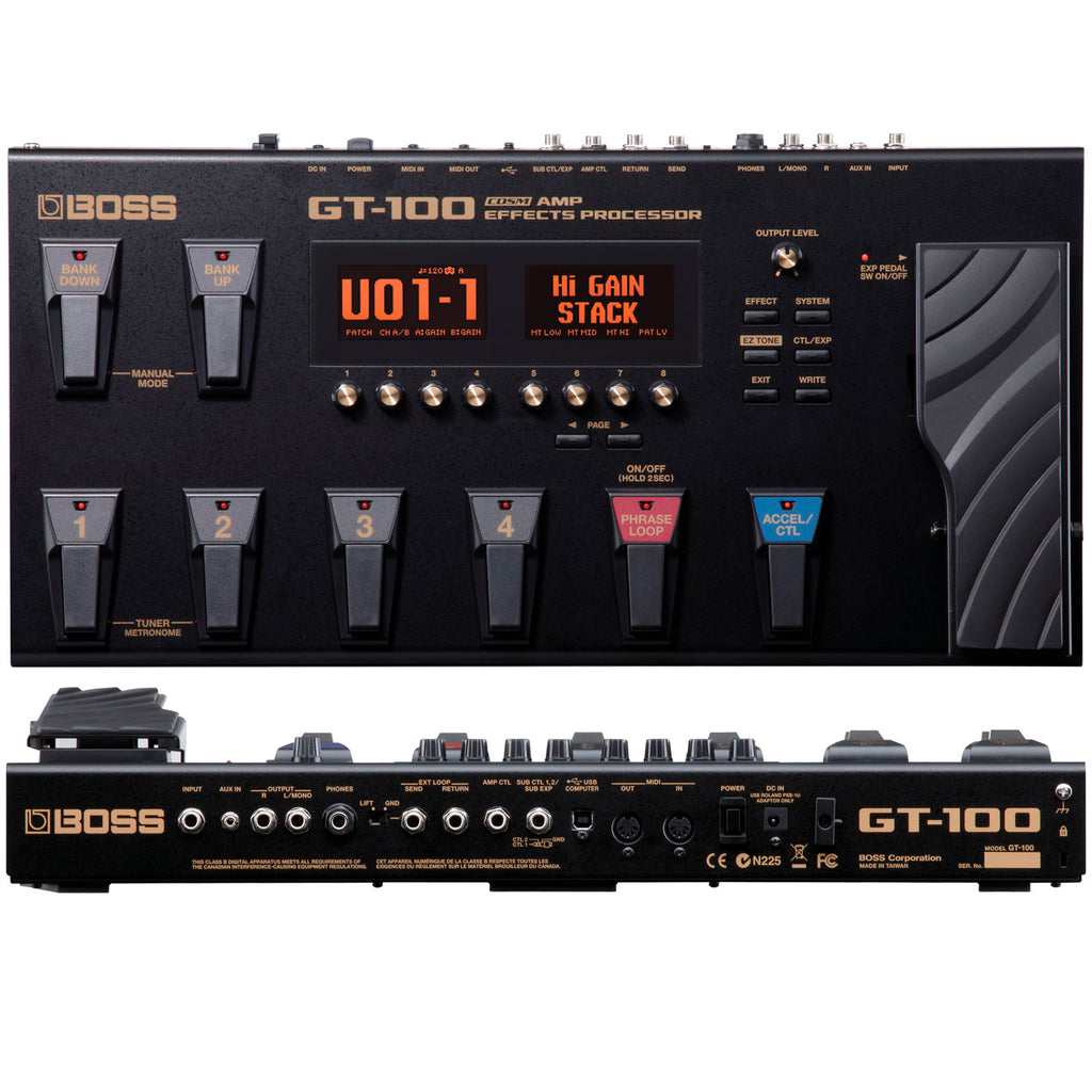 El GT‑100 es el procesador de efectos y amplificadores insignia de BOSS. Basado en la tecnología COSM (modelado de amplificadores y efectos), ofrece un sonido profesional de alta calidad para estudio y escenario. La versión 2.0 añade nuevos amplificadores, efectos MDP avanzados, simulador de guitarra acústica y conversión Guitar‑to‑MIDI.