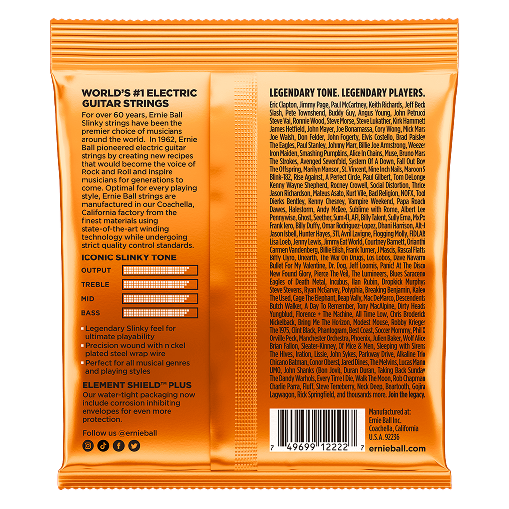 - Grosor: Juego de cuerdas de calibre 9-46, combinando las cuerdas agudas delgadas con cuerdas graves más gruesas ofreciendo un balance ideal entre facilidad de bending y un tono robusto en las notas más graves.