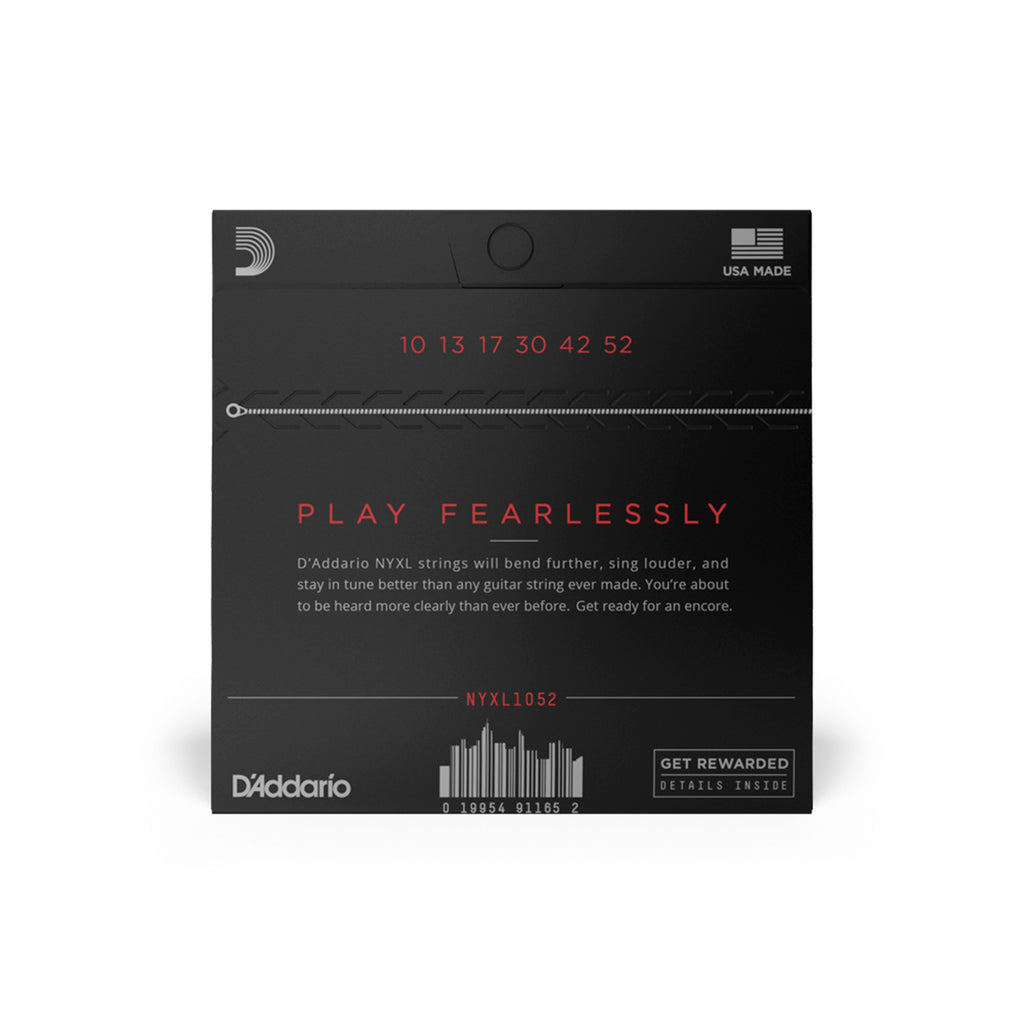 Las cuerdas NYXL1052 de D'Addario están construidas con un núcleo de acero de alta resistencia, combinado con un revestimiento de niquelado que ofrece una excelente respuesta y tono. Son muy conocidas por su estabilidad de afinación mejorada y su longevidad en comparación con cuerdas tradicionales. Estas cuerdas están diseñadas para ofrecer un tono potente, definido y brillante.