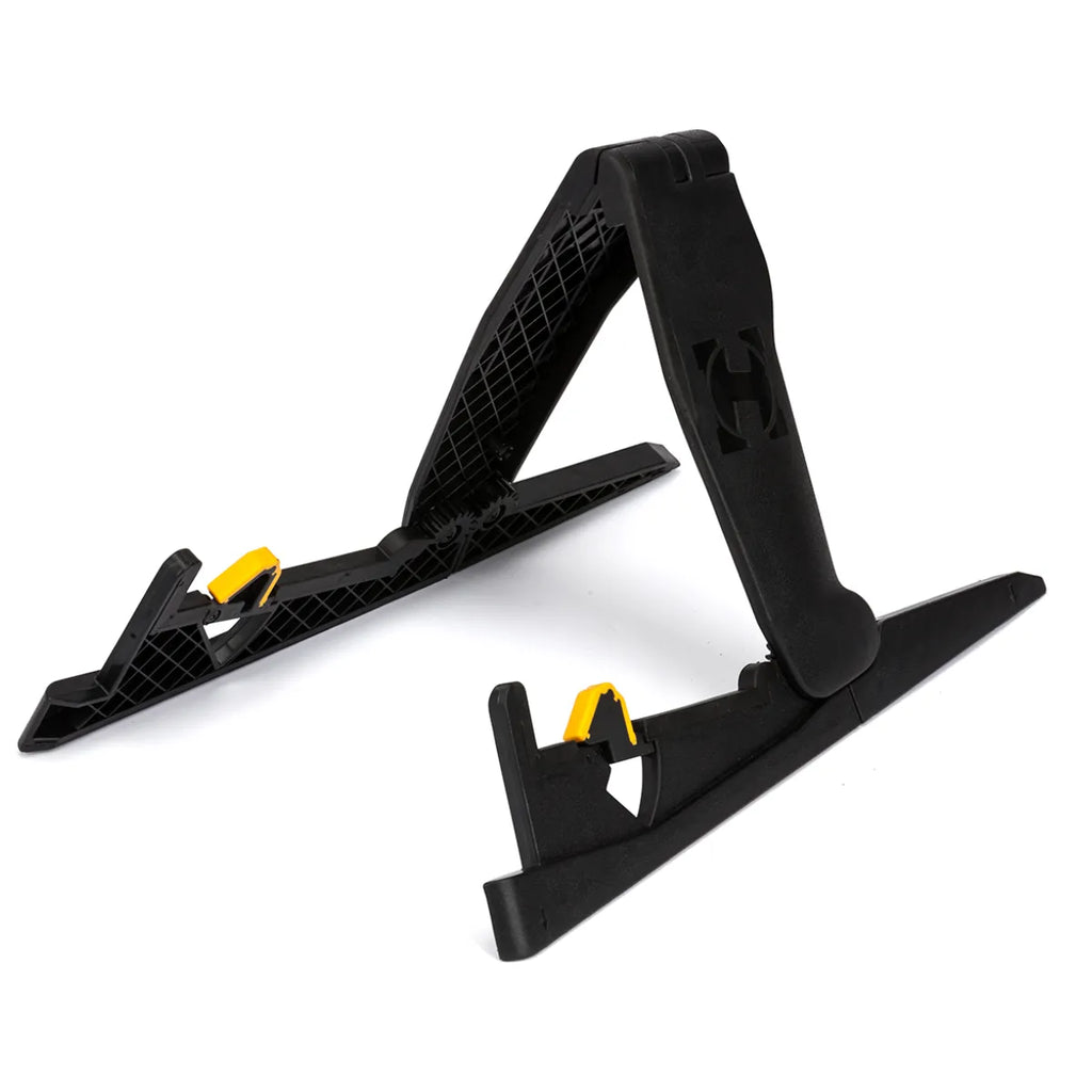 El Hercules GS200B es un soporte tipo “A” ultracompacto, diseñado para brindar una base segura a guitarras eléctricas o acústicas en espacios reducidos. Fabricado con materiales resistentes y un diseño plegable, es ideal para músicos que necesitan portabilidad sin comprometer la estabilidad.
