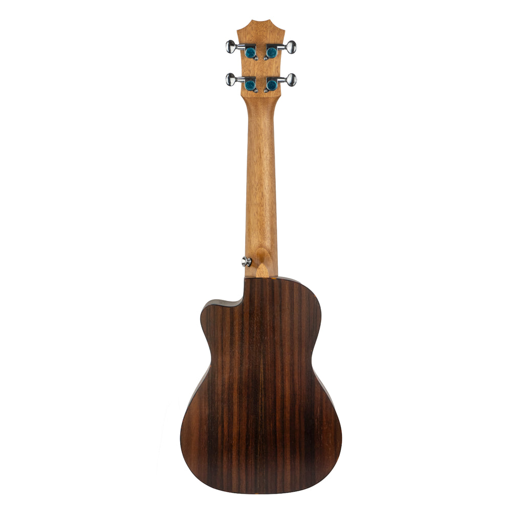 El Ukulele UK-CONCERT-23″ es un instrumento fabricado en palisandro, mientras que la tapa delantera es de abeto, aportando un contraste visual atractivo y una respuesta sonora definida. El diapasón y el puente también son de palisandro, manteniendo coherencia estructural y visual.