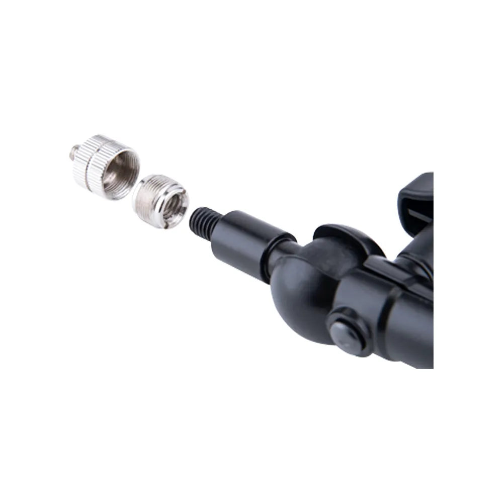 Compatible con micrófonos (roscas ⅜" y adaptador a ⅝") y cámaras (rosca ¼"‑20), incluidos GoPro o cámaras compactas