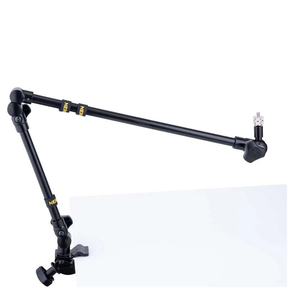 El Hercules DG107B es un brazo articulado versátil diseñado para montajes profesionales de micrófonos y cámaras en estudios, transmisiones o podcasts en casa. Su sistema de sujeción TightVice bloquea con firmeza el equipo, mientras que sus articulaciones con giro de 360° permiten posicionarlo con precisión