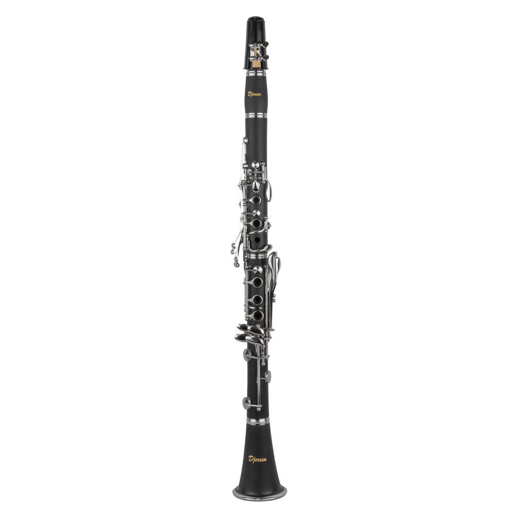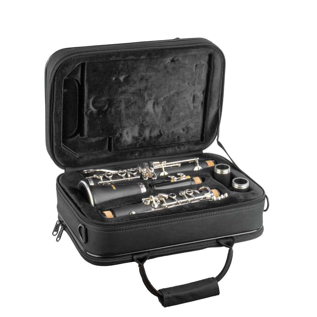 Su cuerpo de baquelita con acabado en textura tipo grano (grain) ofrece resistencia, estabilidad y una sensación sólida al tacto, mientras que sus llaves de cuproníquel plateadas aportan durabilidad y una respuesta mecánica confiable. Es una opción pensada para estudiantes y músicos que buscan un clarinete funcional, equilibrado y con estética sobria.