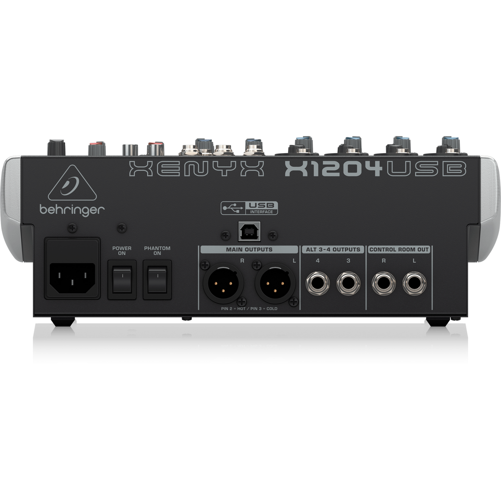 - Preamplificadores Xenyx: 4 preamplificadores Xenyx con alimentación phantom de +48V, ideales para micrófonos de condensador.
