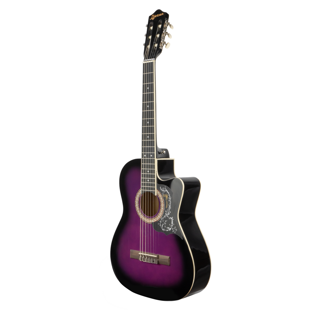 La Guitarra Clásica con Corte 39″ Djersen DJ39CG-PR es una guitarra de cuerdas de nylon diseñada para principiantes y amantes de la música que desean un instrumento cómodo, funcional y con buen sonido para comenzar a tocar de inmediato. Con cuerpo de 39″ y diseño con cutaway, permite un acceso más fácil a los trastes altos, facilitando la ejecución de repertorio variado.