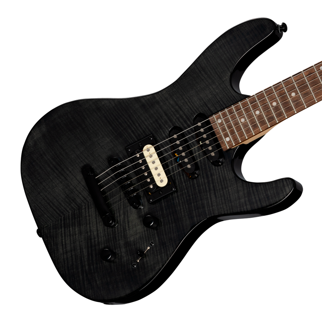 La guitarra eléctrica Kramer Striker Figured HSS Transparent Ebony es una fusión impresionante de estética y rendimiento. Su acabado transparente resalta la belleza natural de la madera. La configuración HSS (Humbucker-Single-Single) permite una versatilidad tonal excepcional, ideal para pasar de riffs contundentes a suaves melodías con facilidad.