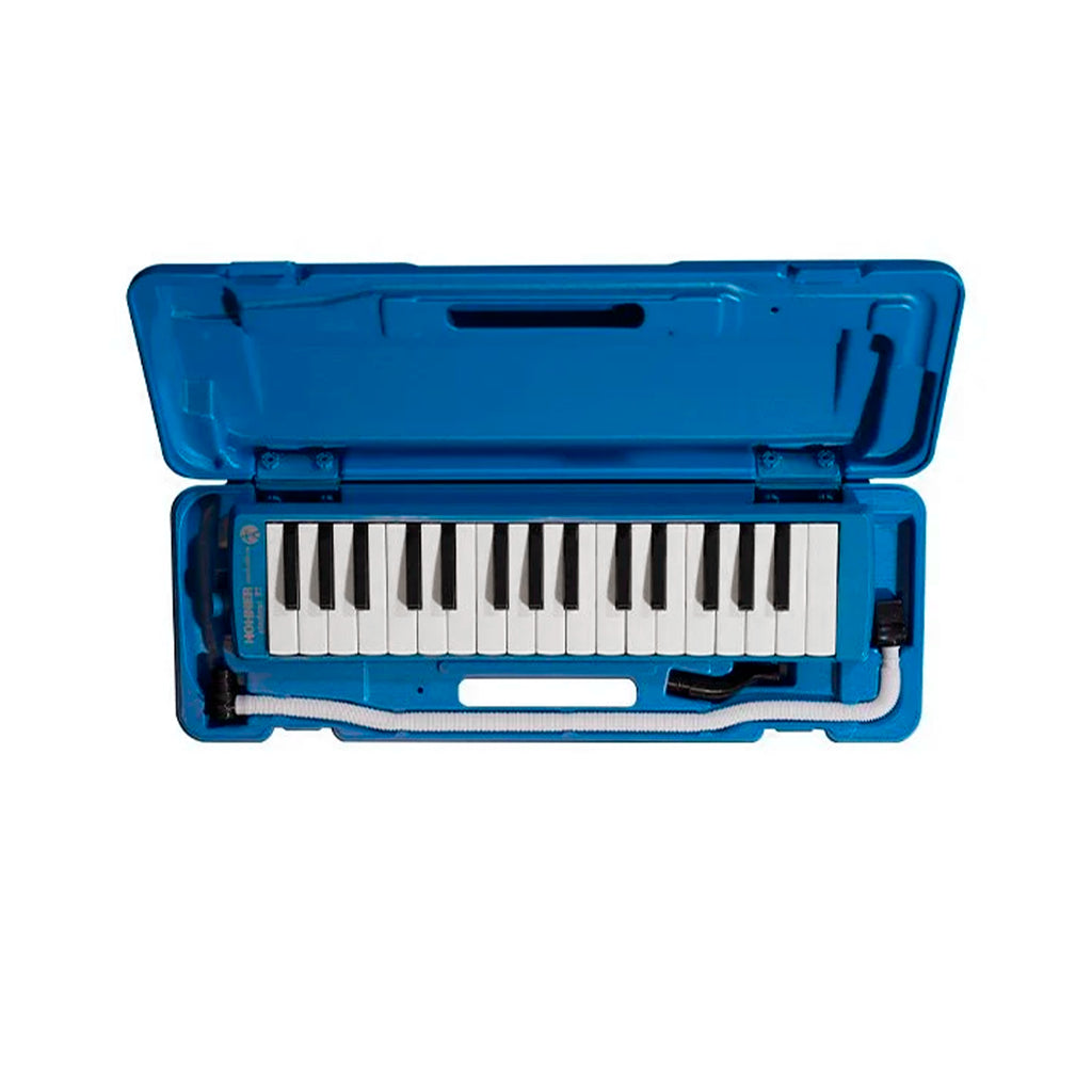 La Hohner Student 32 Blue es una melódica diseñada especialmente para estudiantes y principiantes. Tiene 32 teclas (dos octavas y media), lo que permite tocar una gama tonal bastante amplia (F a C’’’). Su carcasa está hecha de plástico ligero pero resistente, y viene con boquilla ergonómica, tubo para soplar extendido y un estuche rígido que también funciona como atril para partituras. Es ideal para tocar tanto en posición vertical como horizontal, lo que la hace muy cómoda para distintos usos educativos o de interpretación.