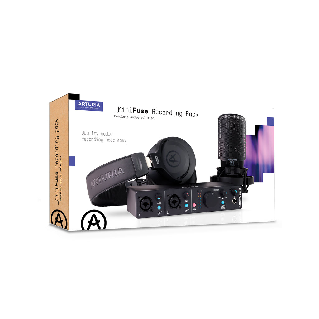 El MiniFuse Recording Pack de Arturia es una solución todo-en-uno para grabación y producción musical, ideal para creadores de contenido, músicos principiantes o productores con poco espacio. Incluye una interfaz de audio/MIDI (MiniFuse 2), un micrófono, audífonos y software de producción, lo que te da todo lo necesario para grabar voces, instrumentos, y producir desde cero en tu computadora. Es plug-and-play, alimentado por USB, y te permite conectar micrófono, instrumentos o equipo MIDI para capturar tu creatividad de forma rápida y profesional.