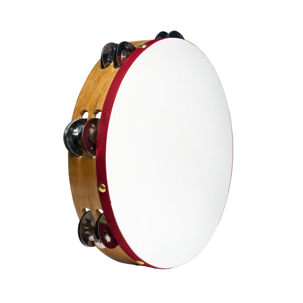 Pandereta de madera con cuero de 7 chapas dobles