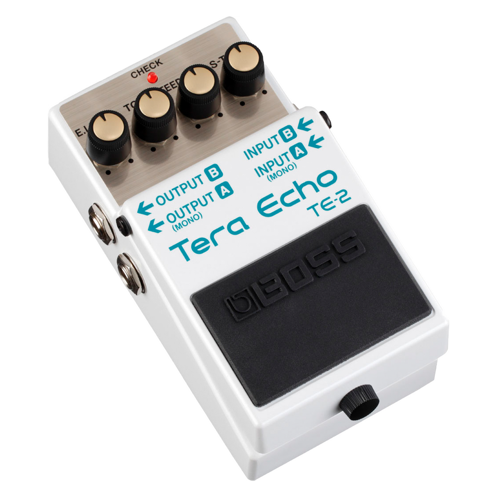 El Boss TE‑2 Tera Echo es un pedal de efectos híbrido que trasciende los tradicionales límites entre eco, reverberación y modulación. Equipado con el innovador procesamiento MDP (Multi-Dimensional Processing), crea paisajes sonoros dinámicos que responden a la fuerza y carácter de tu interpretación .