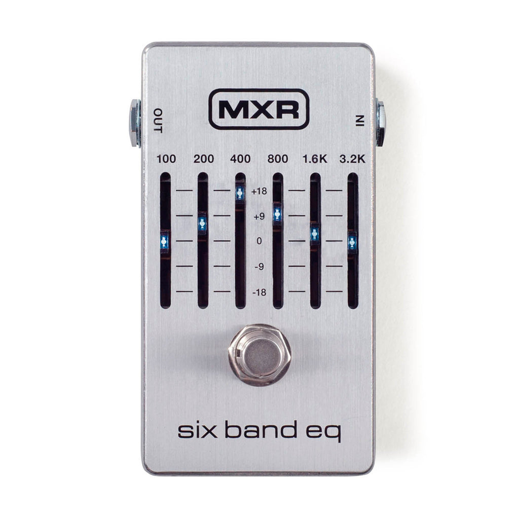 El MXR Six Band EQ cubre todas las frecuencias esenciales de la guitarra y se ha actualizado con circuitos de reducción de ruido, conmutación de derivación real, LED más brillantes para una mayor visibilidad y una carcasa de aluminio liviana.