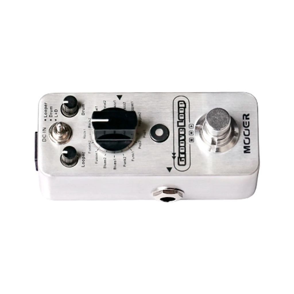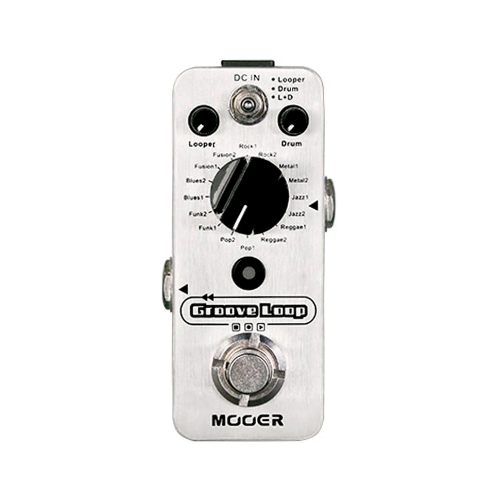 El MOOER GROOVE LOOP reúne el MICRO LOOPER y el MICRO DRUMMER en un micro pedal, lo último en un compañero de improvisación portátil. Ambos elementos se pueden utilizar de forma independiente uno y otro o simultáneamente.