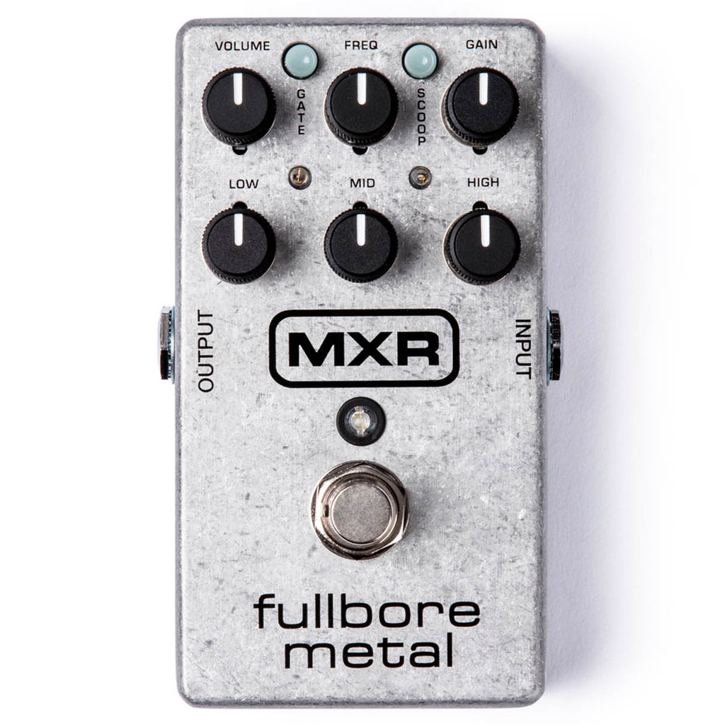 Fullbore Metal Distortion proporciona una distorsión de alta ganancia, un ecualizador de 3 bandas, un control de barrido de rango medio, un interruptor Scoop y una puerta de ruido conmutable con control de sensibilidad interno.