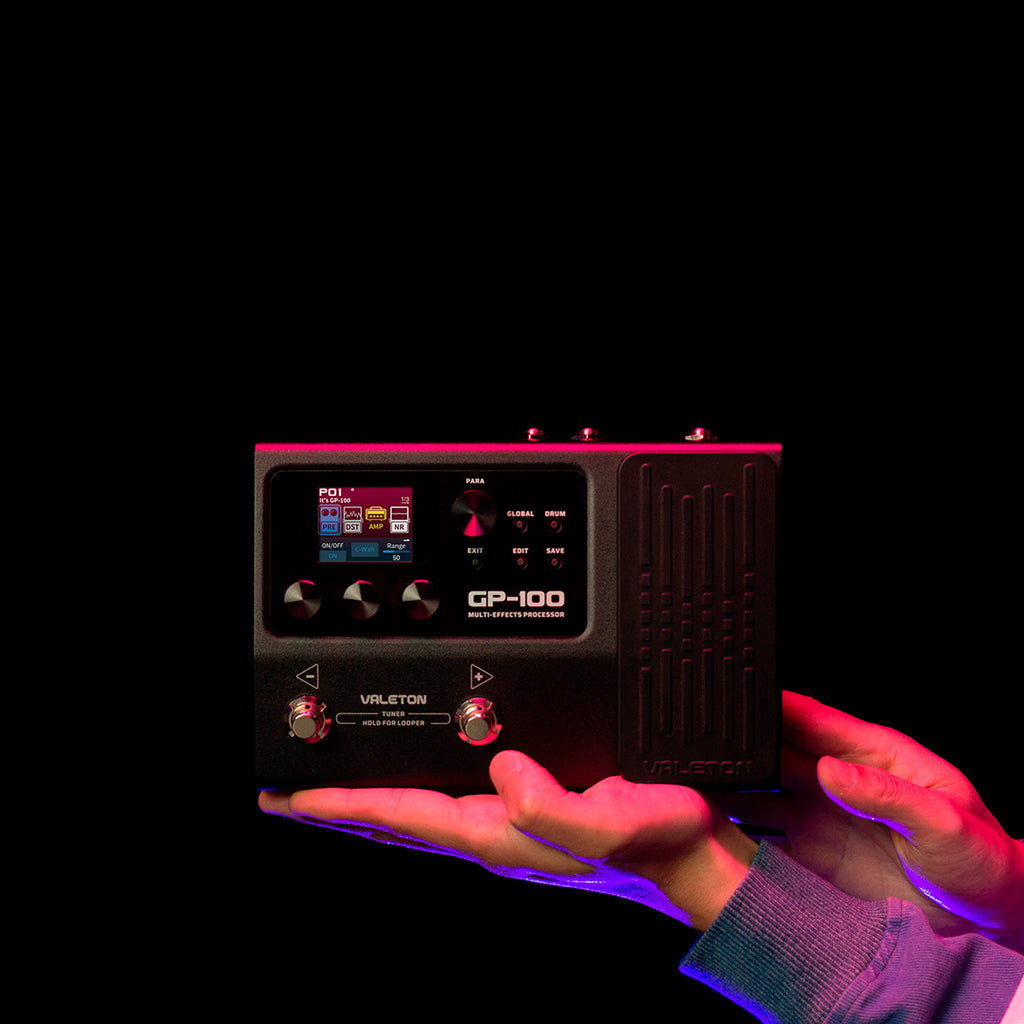 La Valeton GP-100 es un multiefectos compacto y potente, ideal tanto para guitarristas principiantes como avanzados. Utiliza modelado digital (“HD modeling”) para ofrecer un tono orgánico y realista. A pesar de su tamaño reducido, incluye una carcasa metálica robusta, pedal de expresión, looper, máquina de ritmos y soporte para IR (impulse responses), lo que permite diseñar tonos profesionales y grabar directamente mediante USB.