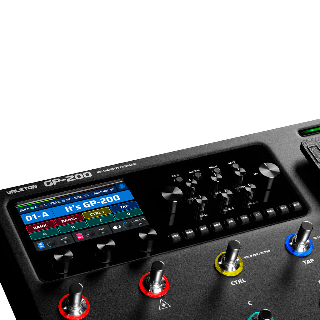 La Valeton GP-200R es una versión especial en color rojo (“R”) de la potente pedalera multiefectos GP-200, diseñada para uso en vivo pero perfectamente útil para estudio y práctica. Usa tecnología de modelado HD para ofrecer tonos muy orgánicos, con más de 140 amplificadores y gabinetes legendarios, y más de 100 efectos stompbox (dinámica, distorsión, modulación, delay, reverb, etc.). Permite combinar hasta 11 módulos de efectos simultáneos, un looper de 180 segundos, una máquina de batería con 100 patrones, y cuenta con un pedal de expresión integrado para controlar parámetros en tiempo real. Además tiene una interfaz de audio por USB-C, tuning cromático incorporado, y 8 footswitches LED personalizables.