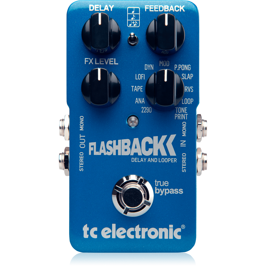 El Flashback de TC Electronic es un pedal multifuncional que combina un delay de calidad profesional con un looper de 40 segundos, todo en un formato compacto y fácil de usar. Este pedal es una herramienta esencial para guitarristas, bajistas y músicos en general que buscan una amplia variedad de sonidos de delay, así como la capacidad de crear loops en tiempo real durante sus actuaciones. Con la tecnología TonePrint de TC Electronic, el Flashback ofrece una flexibilidad sin igual, permitiéndote cargar presets personalizados y crear sonidos únicos.