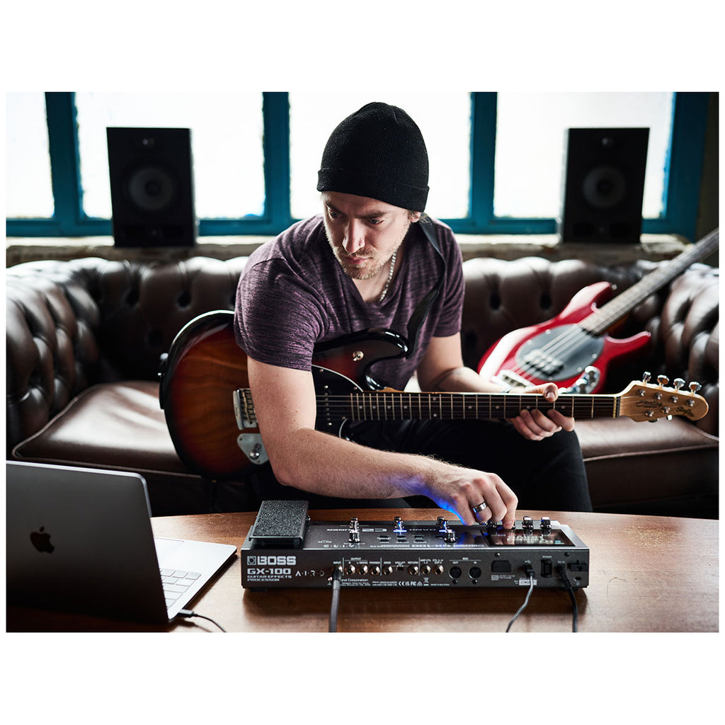 La GX‑100 es una pedalera de efectos avanzada de tipo floorboard que combina modelado de amplificadores AIRD, una amplia paleta de efectos, control en tiempo real y conectividad profesional. Perfecta para escenarios, estudio y grabación mediante USB.