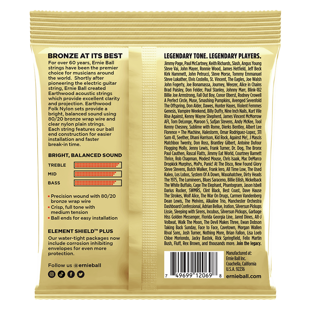 Las Cuerdas de Nylon Ball End Earthwood son una opción ideal para guitarristas que buscan un sonido cálido y una excelente jugabilidad en sus guitarras clásicas o acústicas. Estas cuerdas combinan la tradición del nylon con la conveniencia del extremo de bola, facilitando su instalación y ajuste.