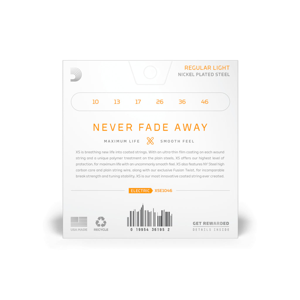 El set D’Addario XS Electric XSE1046 combina la sensación y el tono de cuerdas sin recubrimiento con la protección de la última tecnología de recubrimiento ultrafino. Fabricadas con acero NY Steel para una mayor resistencia a la rotura y estabilidad de afinación, y entorchado de níquel con recubrimiento XS, estas cuerdas ofrecen una respuesta consistente y larga vida útil.