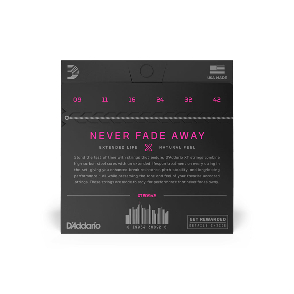 Las cuerdas de guitarra eléctrica XTE0942 de D'Addario corresponden a un set de cuerdas de la serie XT, diseñada para ofrecer una mayor durabilidad y rendimiento. Esta serie combina materiales avanzados con una recubrimiento especial para proporcionar una mayor resistencia a la corrosión, lo que las hace ideales para músicos que buscan cuerdas duraderas y con un sonido excelente. Aquí están las especificaciones detalladas:
