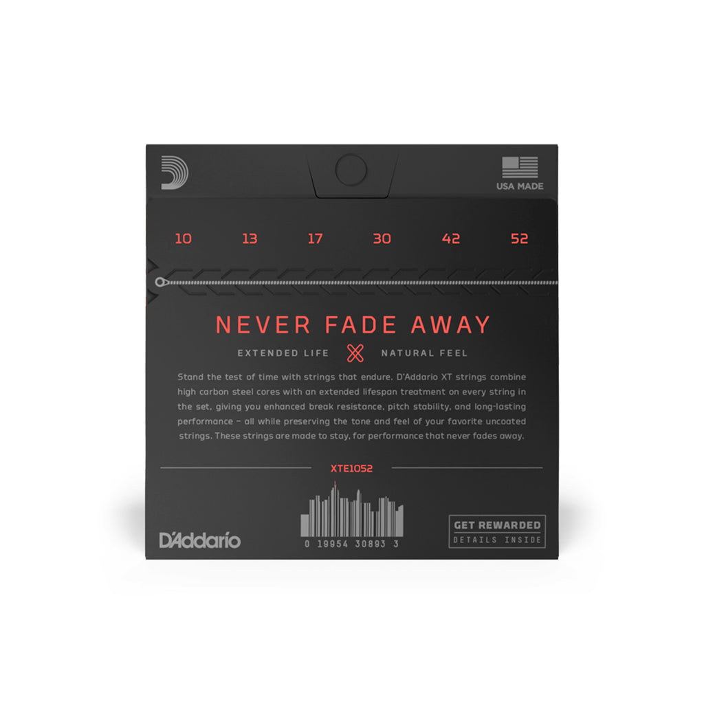 - Las cuerdas D'Addario XTE1052 ofrecen un tono brillante, definido y claro. El recubrimiento mantiene el sonido nítido, mientras que la tensión y los materiales empleados en las cuerdas ayudan a mantener un tono balanceado entre agudos y graves.