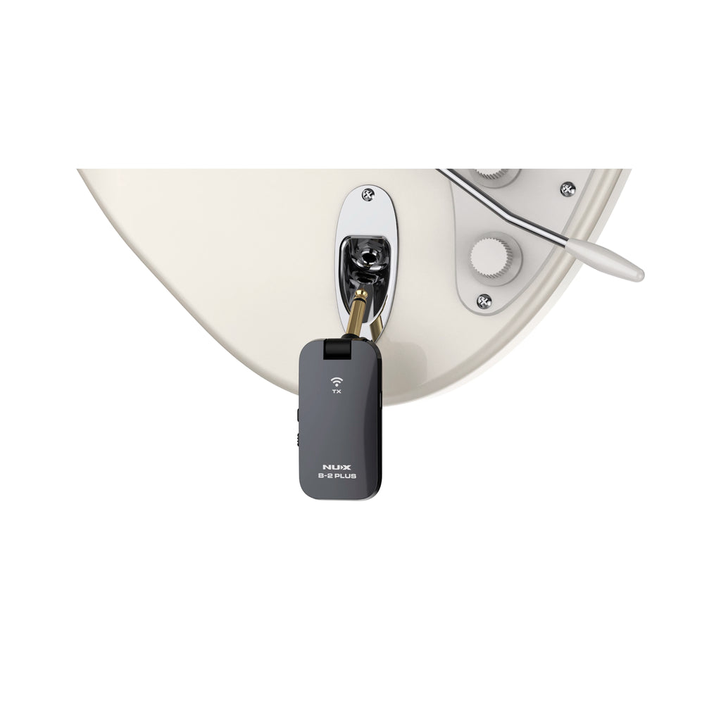 Plug-and-play — sin complicaciones: solo conecta el transmisor a tu guitarra o bajo, el receptor al amplificador o pedalera, enciende ambos — listo para tocar.