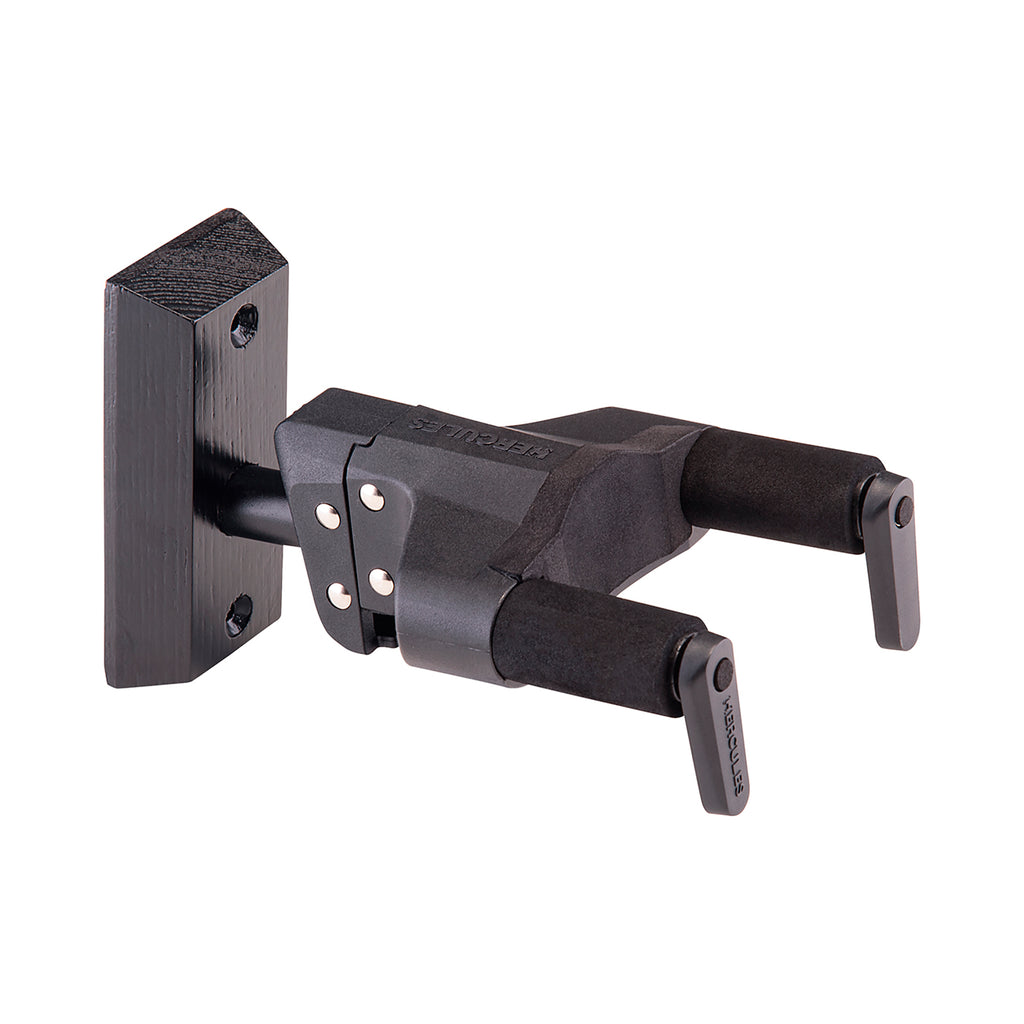 El soporte de yugo giratorio automático HERCULES GSP38WBK PLUS gira automáticamente para acomodar guitarras o bajos de diferentes formas de forma vertical y segura. Cuenta con una base de madera con acabado negro para uso doméstico o de estudio.