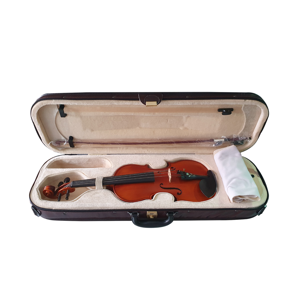Un violín construido en madera de maple y accesorios de ébano dispuesto a los ejecutantes más exigentes y que ameritan una proyección de sonido de alto nivel.