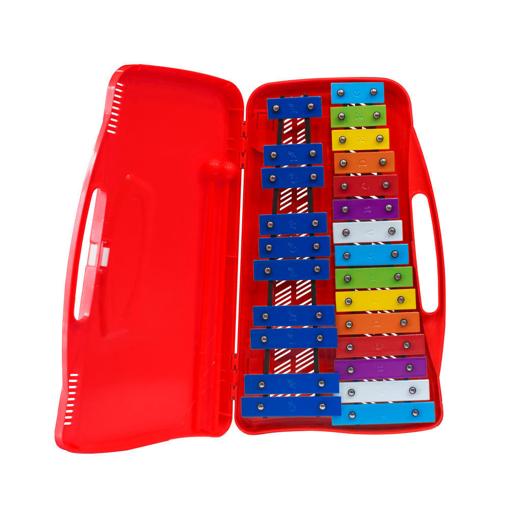 Xilófono con base de polímero y placas con notas. Incluye 2 percutores.